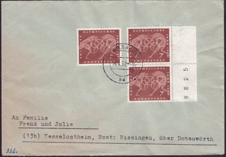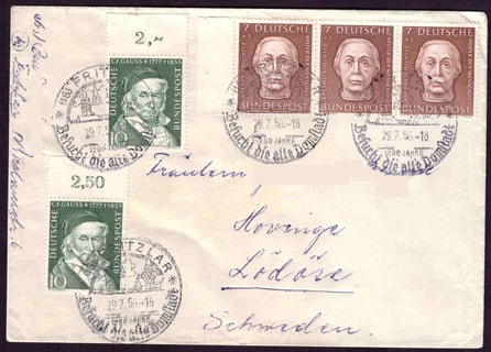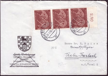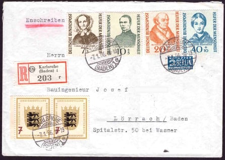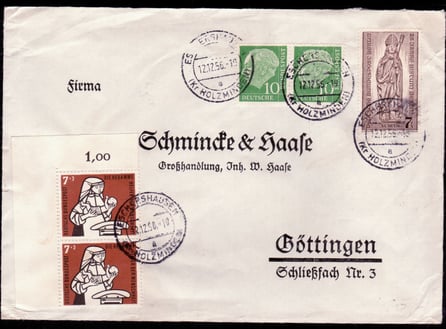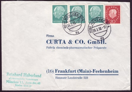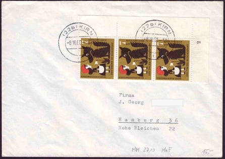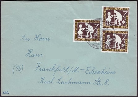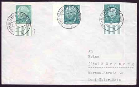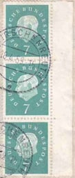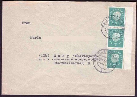 Fernbrief bis 20g = 20 Pfg, frankiert mit 21 Pfg (3x7 Pfg)