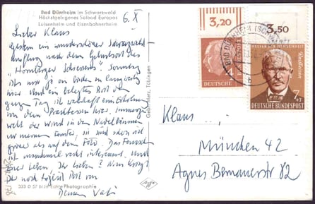 Es hätte ein 6 Pfg-Wert genügt, der wohl nicht zur Hand war im Urlaub und der Postkarte an den Sohn.