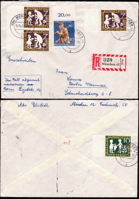 Unter den Mehrfachfrankatursammlern werden solche Belege um 1 Pfg überfrankierte Belege, die aus 7 Pfg-Marken zusammengesetzt sind, toleriert.