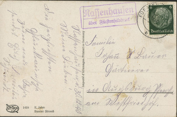 - ab 1937 bis ca. 1945 Zweizeiliger Kastenstempel (s.u.) in Frakturschrift