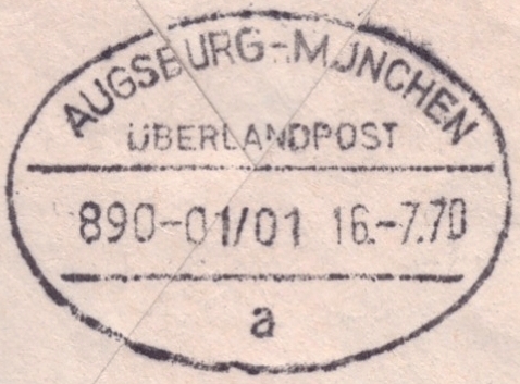 Außer den hier gezeigten gibt es noch den UB b des Stempels MÜNCHEN-KEMPTEN / ÜBERLANDPOST / b in der Zeit ab 11. November 1964.