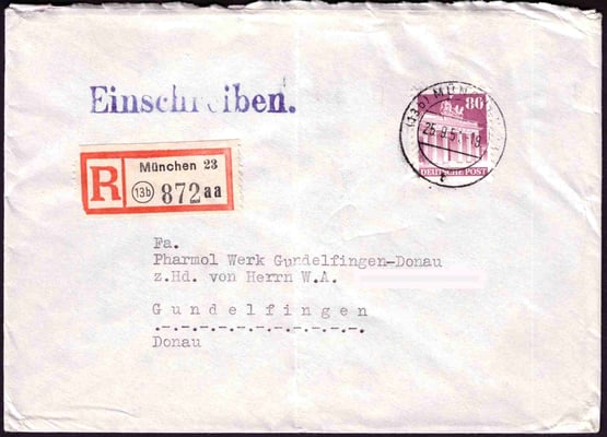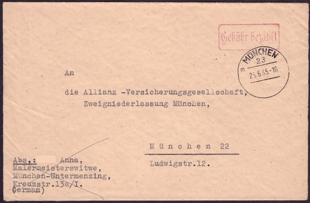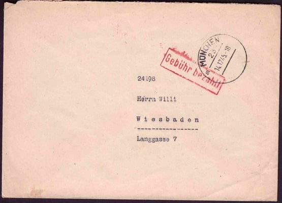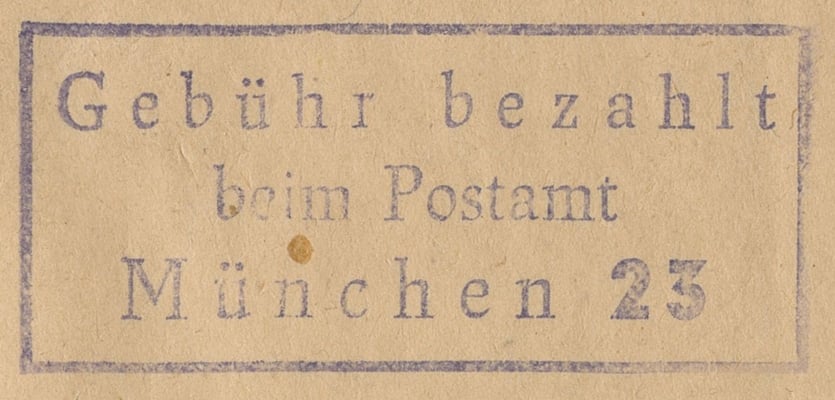 Gebühr bezahlt / beim Postamt / München 23