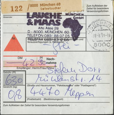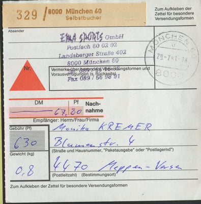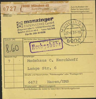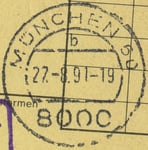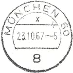 8000 München 60 = Zustellpostamt für Am Westkreuz, Aubing, Langwied, Lochhausen, Neuabing, Obermenzing, Pasing