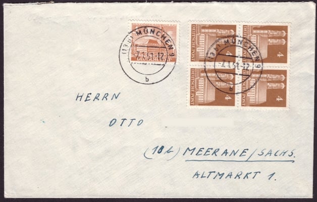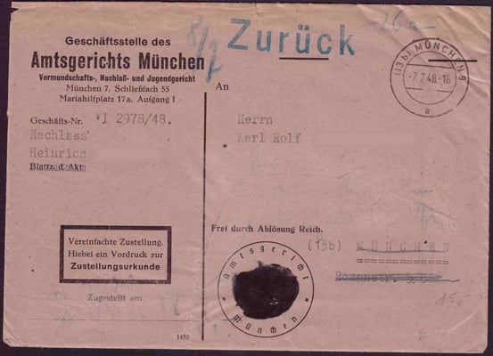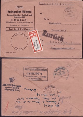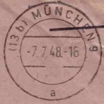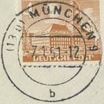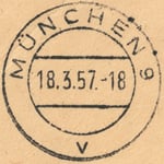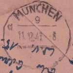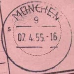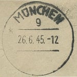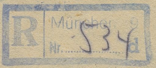 Auf einer Rundfunkgenehmigungskarte nebst Umschlag findet sich der Stempel MÜNCHEN 9 / v