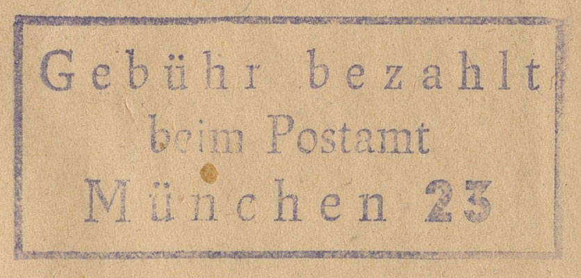 Gebühr bezahlt / beim Postamt / München 23